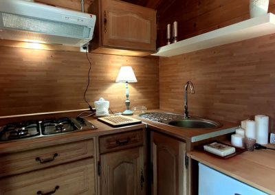 Tout ce qu’il faut pour ne manquer de rien. Frigo plaque de cuisson, lavabo. L’équipement est complet.