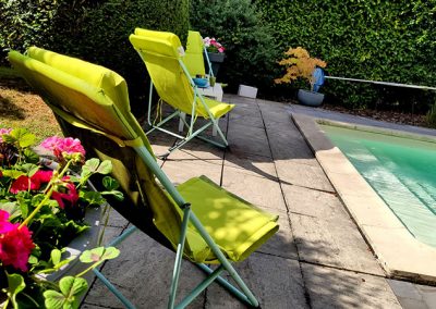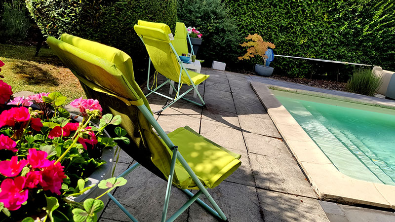 Une grande piscine pour adultes pour se rafraîchir quand le soleil bas son plein en été. Voir les conditions d’utilisation.
